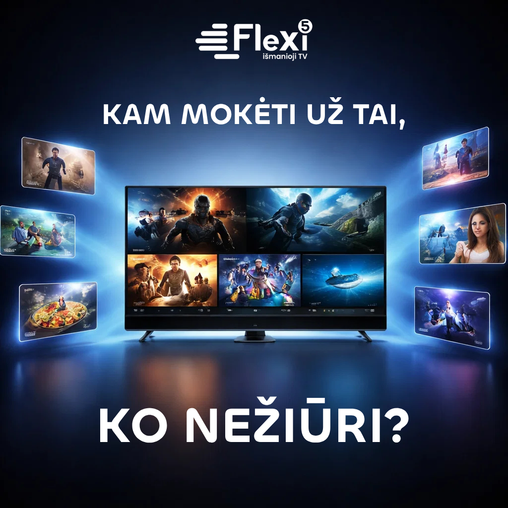 GAUKITE 3 MĖNESIUS DOVANŲ „VISKAS ĮSKAIČIUOTA“ PAKETĄ Užsisakykite Flexi išmaniąją televiziją už 6 €/mėn. su 24 mėn. sutartimi ir 3 mėnesius gaukite „Viskas įskaičiuota“ kanalų paketą nemokamai.Palikite kontaktus – mes susisieksime. Dviguba nauda visiems Naudojatės senu televizoriumi? Atnaujinkite jį su Flexi priedėliu, kuris jums leis ne tik matyti aukštos kokybės televiziją, tačiau kartu gausite ir […]